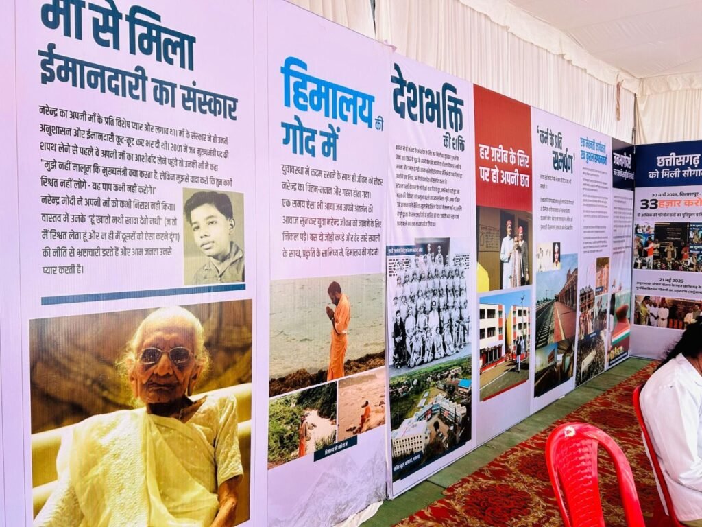 प्रधानमंत्री नरेन्द्र मोदी के जीवन एवं योगदान की झलकियां प्रदर्शित