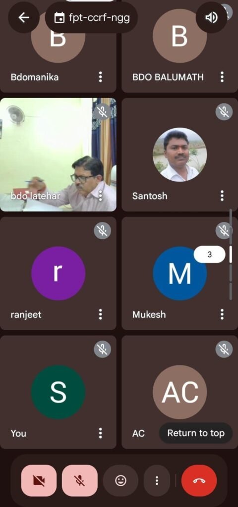 рдмреИрдардХ рдореЗрдВ рдЖрдИрдЯреАрдбреАрдП рдирд┐рджреЗрд╢рдХ рдкреНрд░рд╡реАрдг рдХреБрдорд╛рд░ рдЧрдЧрд░рд╛рдИ, рдЕрдкрд░ рд╕рдорд╛рд╣рд░реНрддрд╛ рд░рд╛рдорд╛ рд░рд╡рд┐рджрд╛рд╕, рд╕рднреА рдкреНрд░рдЦрдВрдб рд╡рд┐рдХрд╛рд╕ рдкрджрд╛рдзрд┐рдХрд╛рд░реА рдФрд░ рдЕрдиреНрдп рдЕрдзрд┐рдХрд╛рд░реА рд╡реАрдбрд┐рдпреЛ рдХреЙрдиреНрдлреНрд░реЗрдВрд╕рд┐рдВрдЧ рд╕реЗ рдЬреБрдбрд╝реЗред