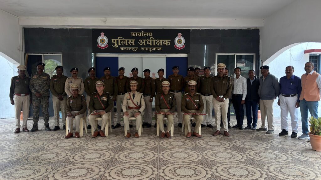 बलरामपुर/ 77वें गणतंत्र दिवस के अवसर पर पुलिस अधीक्षक बलरामपुर वैभव बैंकर (भा.पु.से.) के द्वारा पुलिस अधीक्षक कार्यालय बलरामपुर के प्रांगण में प्रातः 08.00 बजे ध्वजारोहण किया गया एवं राष्ट्रीय ध्वज को शस्त्र सलामी दी गई। ध्वजारोहण कार्यक्रम में अतिरिक्त पुलिस अधीक्षक विश्वदीपक त्रिपाठी, डीएसपी मो. याकूब मेमन, डीएसपी प्रमोद किस्पोट्टा तथा पुलिस अधीक्षक कार्यालय बलरामपुर के समस्त अधिकारी/कर्मचारी उपस्थित रहे। इस अवसर पर पुलिस अधीक्षक बलरामपुर द्वारा उपस्थित समस्त अधिकारी/कर्मचारियों को गणतंत्र दिवस की बधाई दी गई।