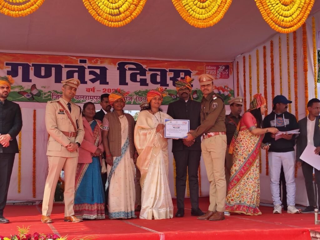 पुलिस परेड ग्राउंड में आयोजित गणतंत्र दिवस समारोह के दौरान महिला एवं बाल विकास मंत्री लक्ष्मी राजवाड़े की गरिमामयी उपस्थिति में निरीक्षक जितेंद्र जायसवाल को प्रशस्ति पत्र प्रदान कर सम्मानित किया गया।