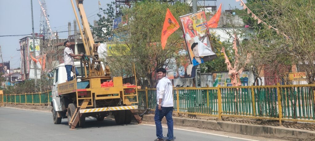 भारतीय जनता युवा मोर्चा के जिलाध्यक्ष मंगलम पांडेय सड़क पर साज-सज्जा की तैयारियों में युवाओं के साथ कंधे से कंधा मिलाकर जुटे हुए हैं।