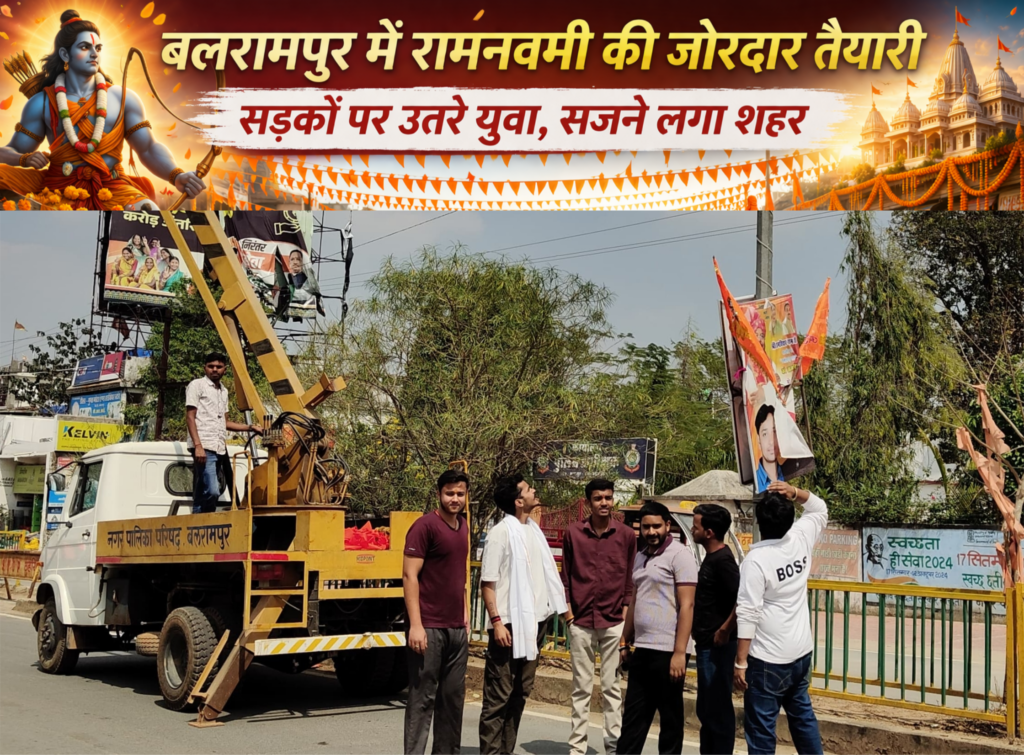 बलरामपुर/(शोएब सिद्दिकी) बलरामपुर नगर में रामनवमी को लेकर तैयारियां जोरों पर हैं। नवरात्रि शुरू होते ही पूरे शहर में भक्ति और उत्साह का माहौल बन गया है। नगर को भव्य रूप देने के लिए युवाओं द्वारा जगह-जगह झंडे लगाए जा रहे हैं और साज-सज्जा का कार्य लगातार जारी है।