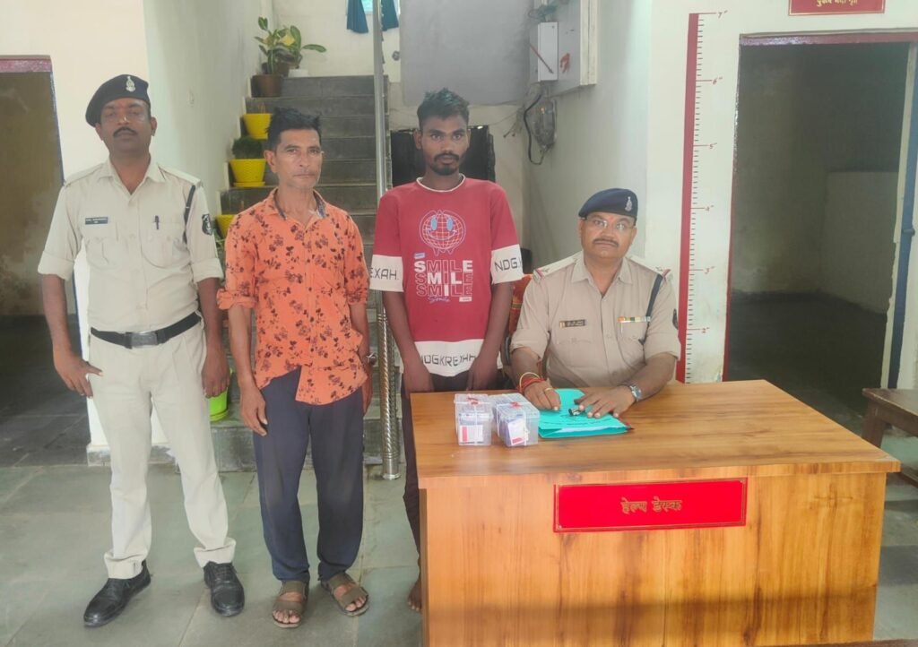 मामले का संक्षिप्त विवरण इस प्रकार है कि दिनांक 11-09-2024 को थाना जांजगीर पुलिस / सायबर टीम जांजगीर को मुखबीर से सूचना मिला कि काला रंग के मोटर सायकल CG-11-BJ- 2964 में सवार दो ब्यक्ति है जिसके द्वारा अवैध रूप से नशीली टेबलेट खोखसा मोड जांजगीर के पास बिक्री करने के लिए ग्राहक तलाश रहे है कि सूचना पर विवेक शुक्ला (IPS) पुलिस अधीक्षक जांजगीर- चाम्पा* के निर्देशन में आरोपियों को पकड़ने के लिए थाना जांजगीर / सायबर टीम द्वारा घटना स्थल पहुंच कर घेराबंदी किया जाकर अति पुलिस अधीक्षक श्री राजेन्द्र कुमार जायसवाल के कुशल मार्गदर्शन में मौके पर *आरोपी* 01. राकेश कुमार यादव उम्र 20 साल निवासी लछनपुर बाबा डेरा थाना जांजगीर 02. अजय सिंह उम्र 49 साल निवासी पोस्ट आफिस के पास चाम्पा थाना चाम्पा को पकड़ा था, जिसके कब्जे से गवाहो के समक्ष 1342 नग नशीली टेबलेट किमती 3220/ रू एवं परिवहन में प्रयुक्त एक मोटर सायकल किमती 70000/रू को बरामद किया जाकर आरोपियों के विरूद्ध अपराध धारा सदर का सबुत पायें जाने से थाना जांजगीर में अपराध क्रमांक 705/2024 धारा 21, 29 NDPS ACT के तहत कार्यवाही किया जाकर विधिवत् गिरफ्तार कर दिनांक 12.09.2024 को न्यायिक रिमाण्ड पर भेजा गया। प्रकरण की विवेचना जारी है।