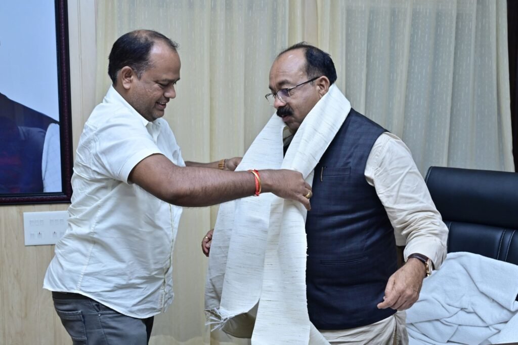 तीर्थाटन से वापस लौटे प्रदेश के उपमुख्यमंत्री अरुण साव से भाजपा नेता प्रशांत सिंह ठाकुर ने सौजन्य भेंट की।