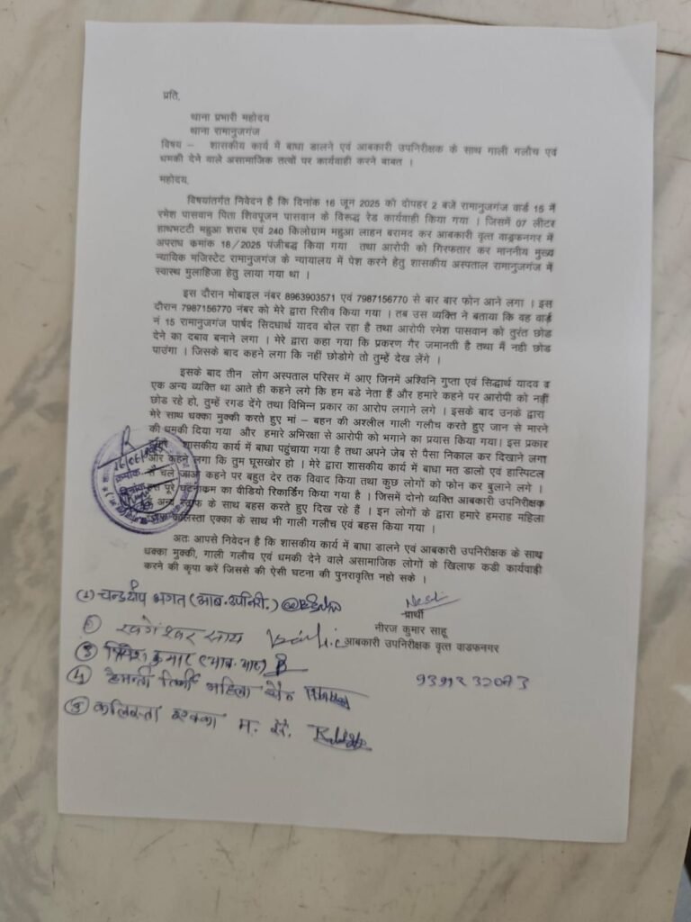 रामानुजगंज में आबकारी निरीक्षक को धमकी, महिला कर्मियों से अभद्रता – तीन के खिलाफ शिकायत दर्ज